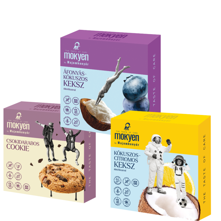 Sokáig küzdöttem sikertelenül azzal, hogy megfelelő étrendet tegyek össze, napközben ne egyek félre, de ne is éhezzek. Nagyon el voltam keseredve. Ebben a helyzetben találkoztam a MOKYEN by Majomkenyér kekszekkel, ami megmenti a délutánokat, de sokszor reggeli helyett eszem vagy sportolás előtt bekapok párat. A kedvencem a Törökmogyorós upcycled keksz, ez mindig van nálam.